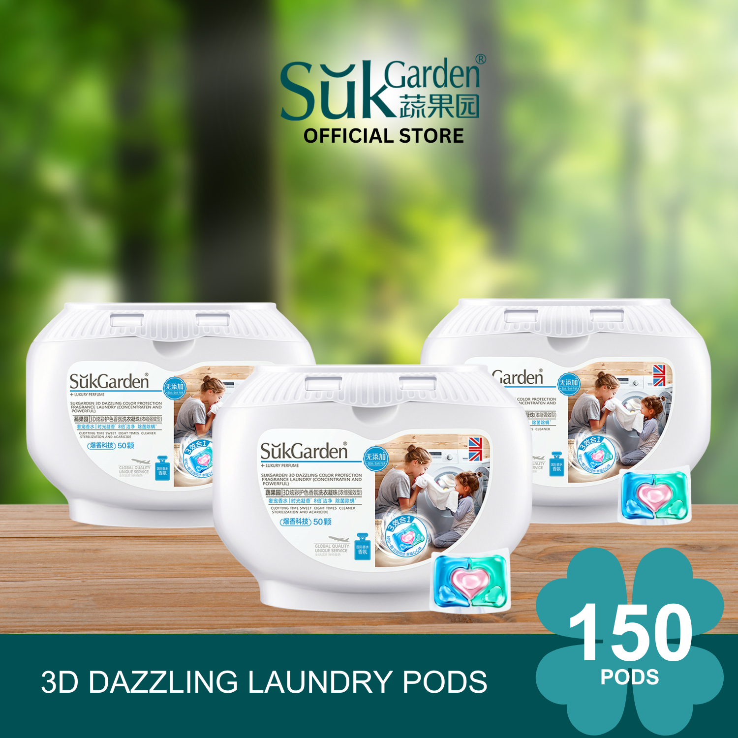 SukGarden 3D 3-in-1 Plant Based Long Lasting Fragrance Laundry Pods Capsules